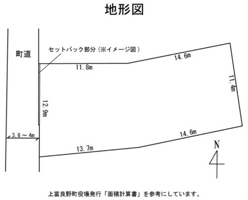 | 接道 | 西側幅員3.6〜4mの公道に12.9m接道 | 土地権利 | 所有権 |